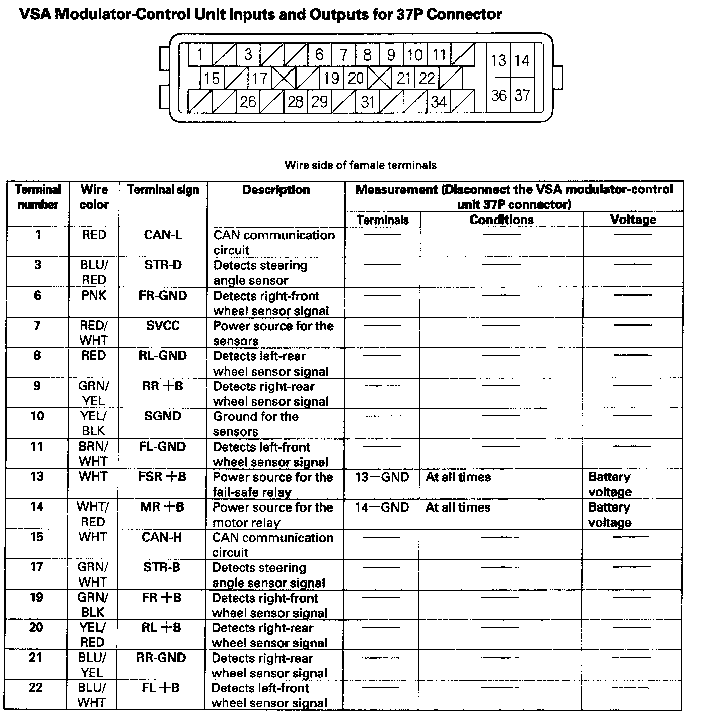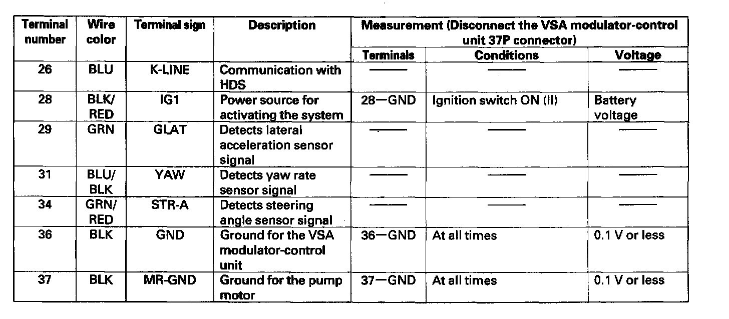 VSA Modulator-Control Unit Inputs and Outputs for 37P Connector (Part 1):