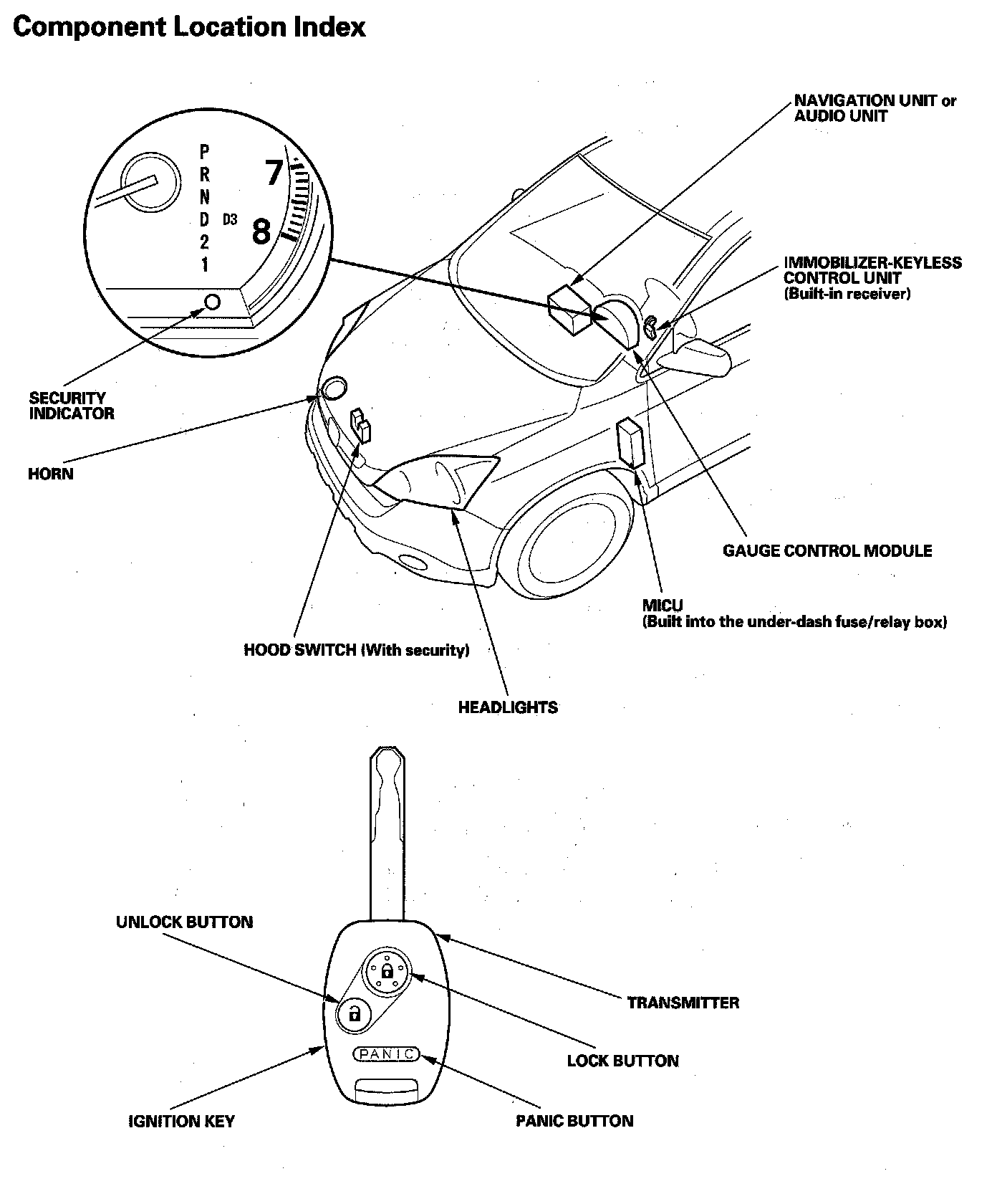 Keyless/Power Door Locks/Security System Component Location Index: