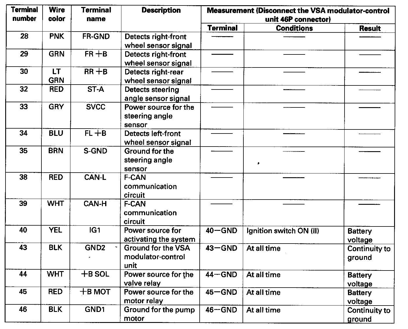 VSA Modulator-control Unit Inputs and Outputs for 46P Connector (Part 2):