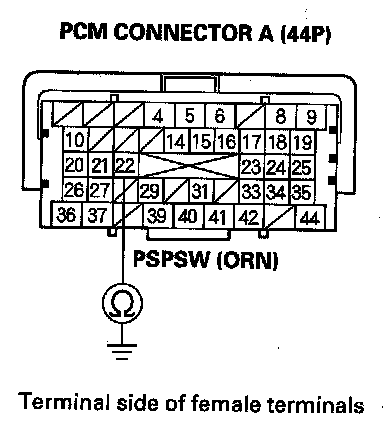 24. Check for continuity between PSP switch 2P connector terminal No. 2 and body ground.