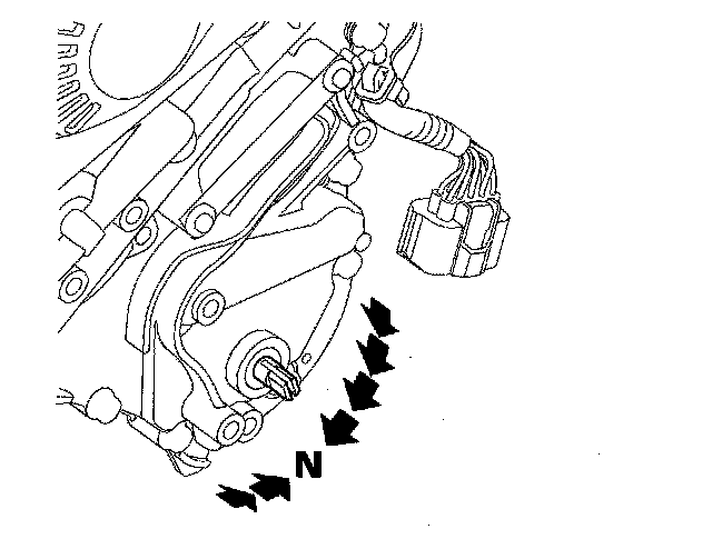 5. Make sure the selector control shaft is in the N position. If necessary, move the shift lever to the N position.