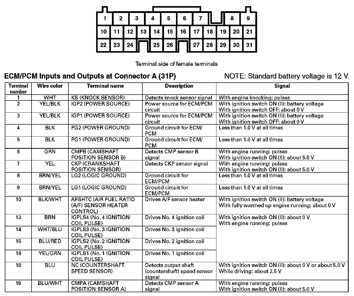 ECM/PCM Inputs And Outputs At Connector A (31P) (Part 2):