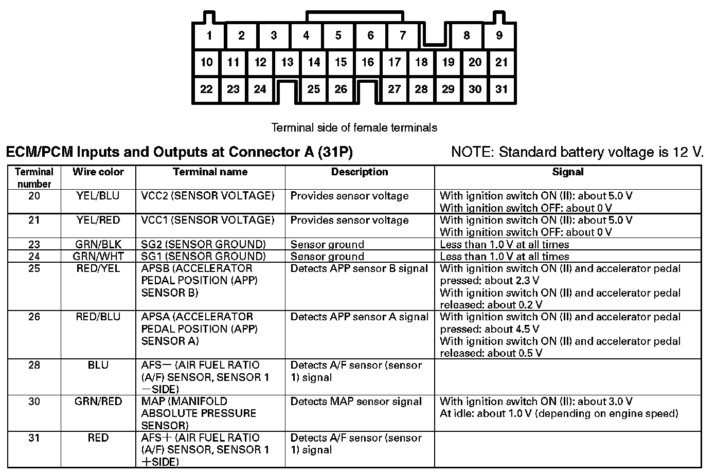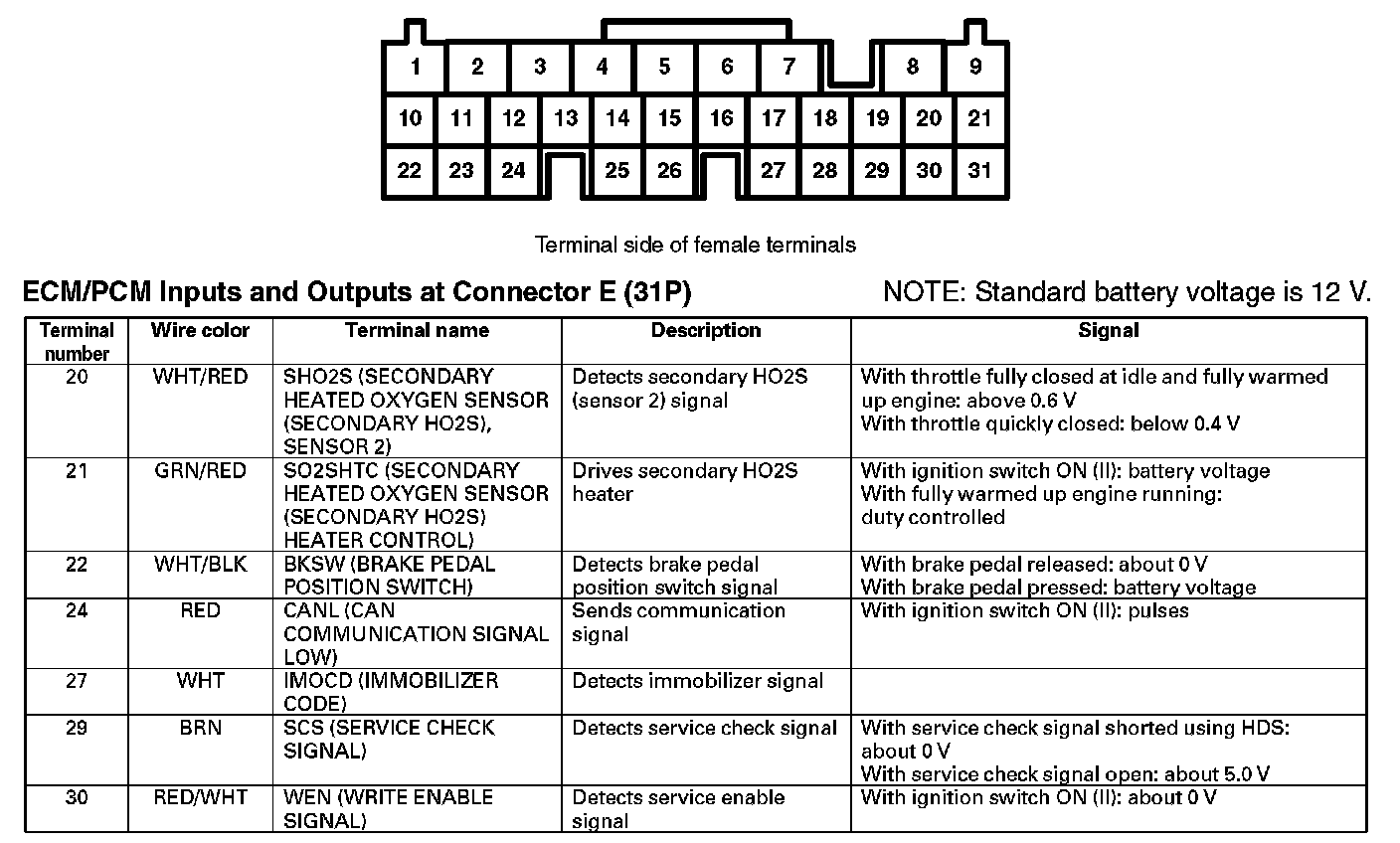 Home >> Honda >> 2007 >> Element 2WD L4-2.4L >> Repair and Diagnosis >> Diagrams >> Connector Views >> Engine Control Module >> ECM/PCM Inputs and Outputs