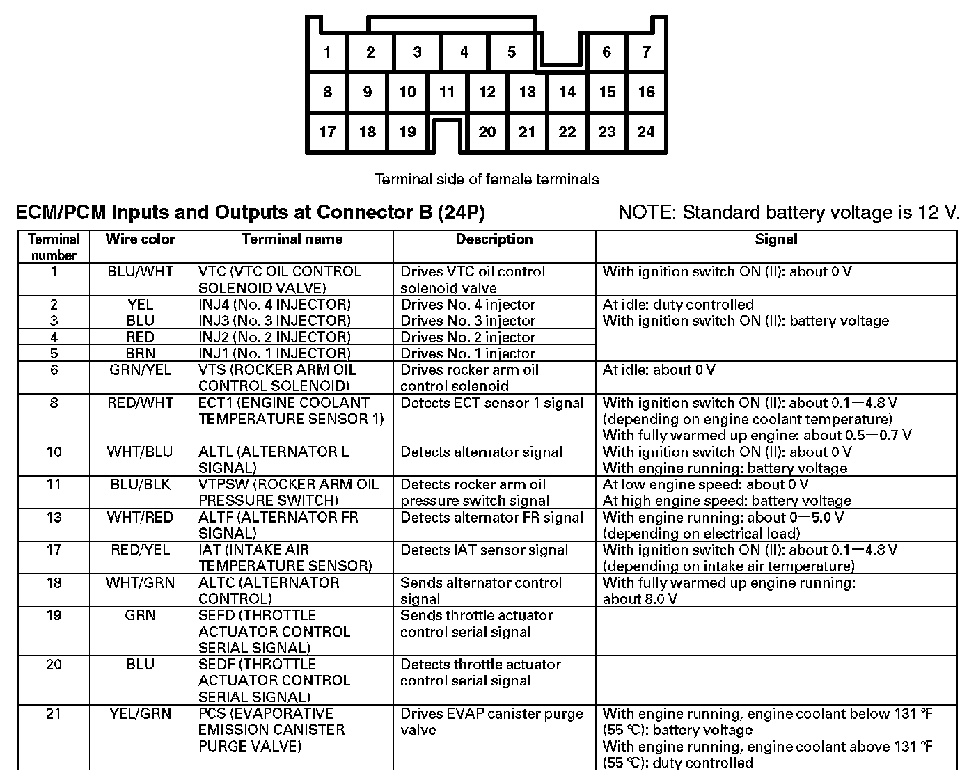 ECM/PCM Inputs And Outputs At Connector B (24P):