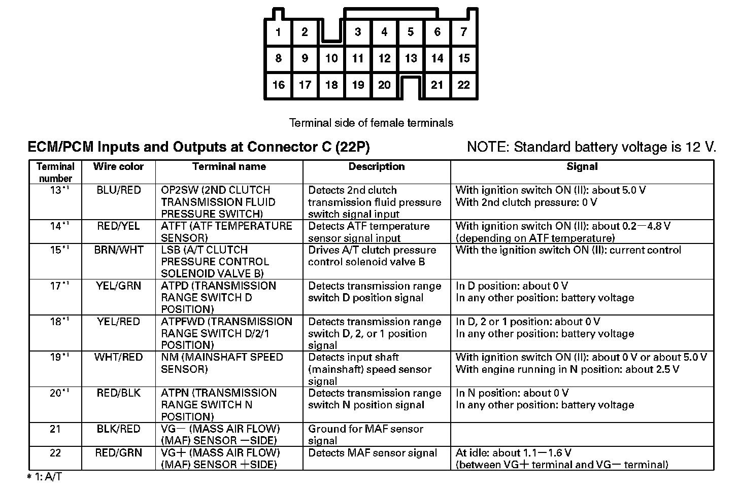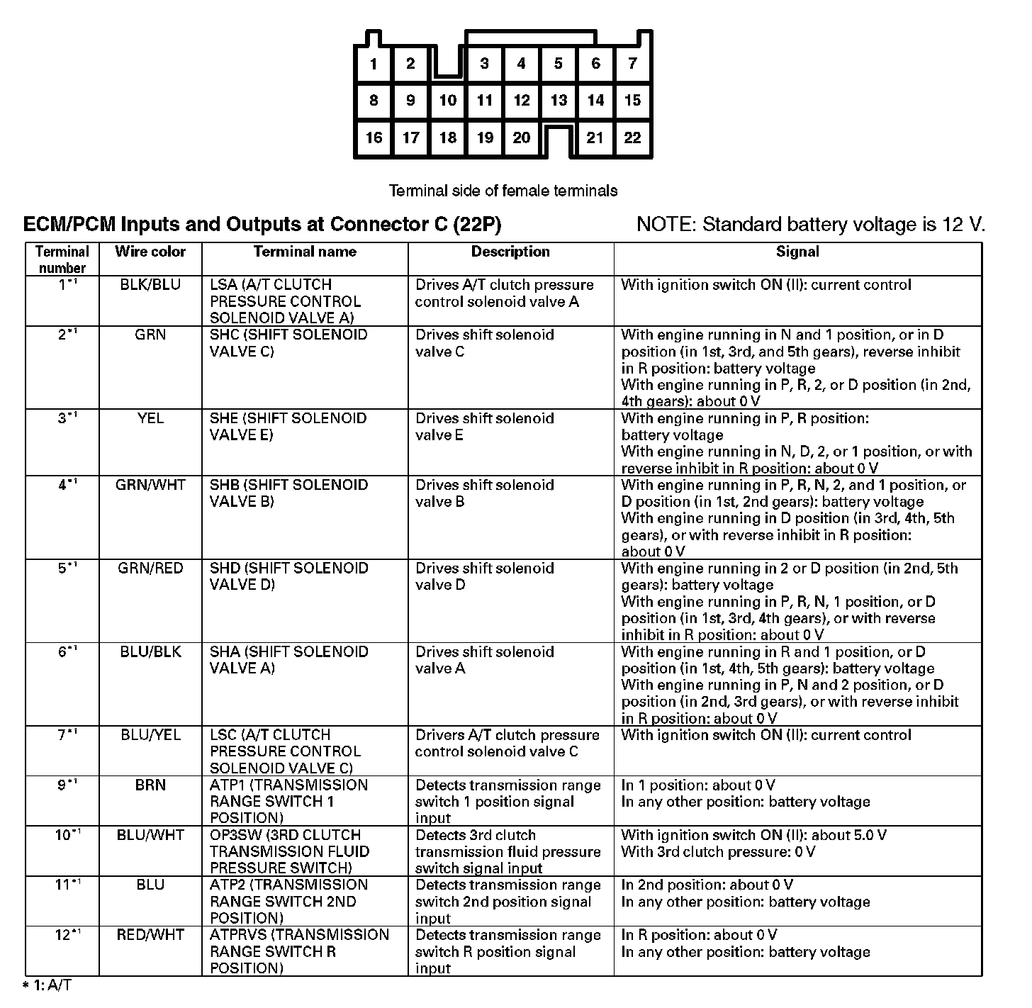 ECM/PCM Inputs And Outputs At Connector C (22P) (Part 1):