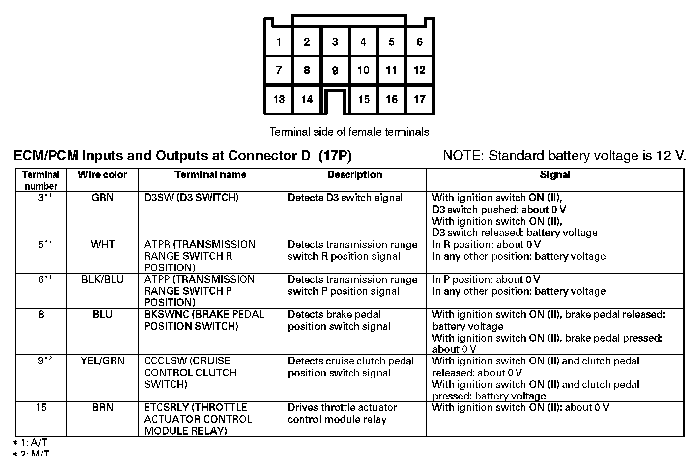 ECM/PCM Inputs And Outputs At Connector D (17P):