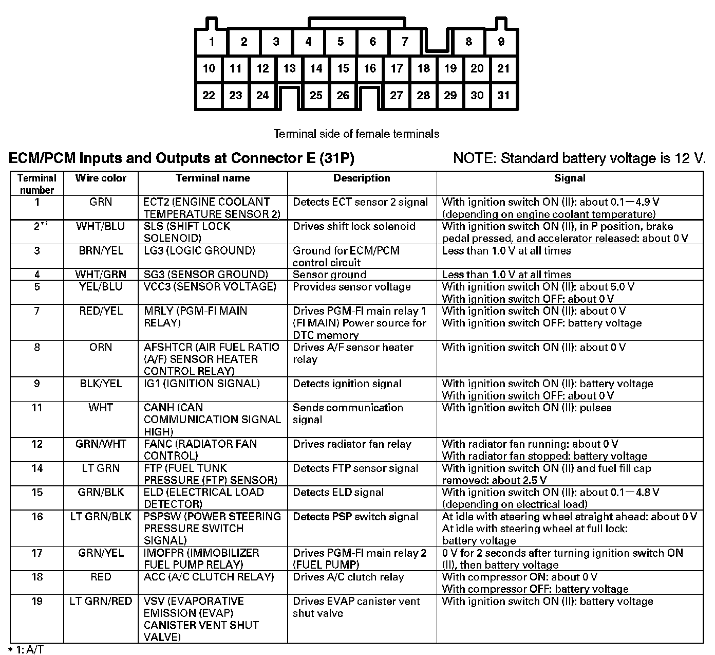 ECM/PCM Inputs And Outputs At Connector E (31P) (Part 1):