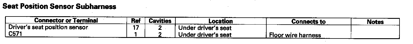 Seat Position Sensor Subharness: