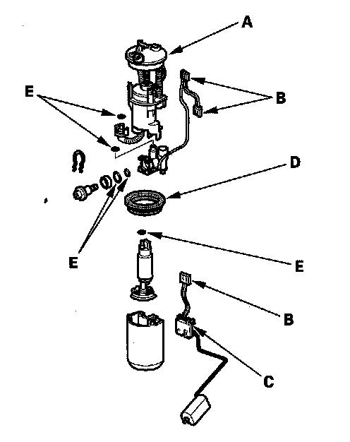 - When installing the fuel gauge sending unit (C), make sure the connection is secure and the connectors is firmly locked into place. Be careful not to bend or twist it excessively.