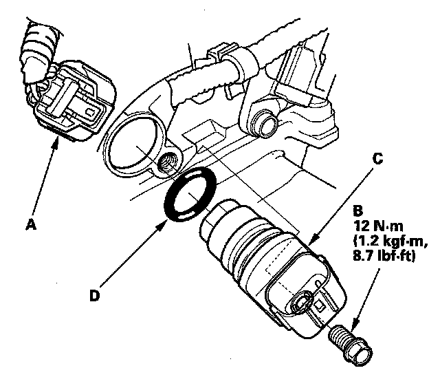 Install the parts in the reverse order of removal with a new O-ring (D).