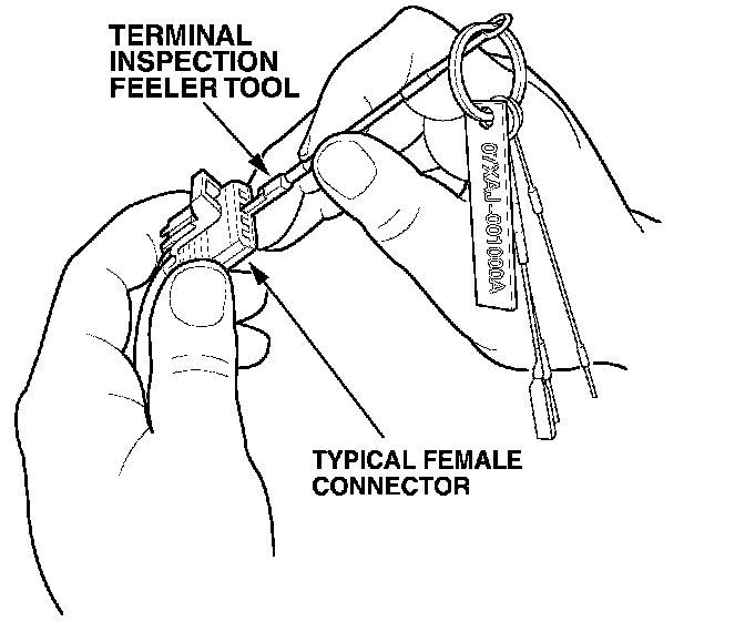 NOTE: Make sure you do not select a terminal tool that is larger than the mating male terminal because it would spread the female terminal and cause a loose fit.