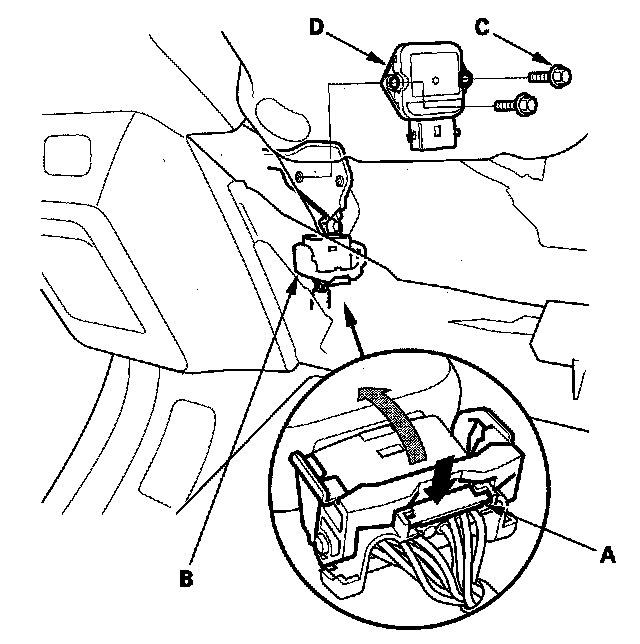 2. Remove the bolts (C), and the throttle actuator control module (D).