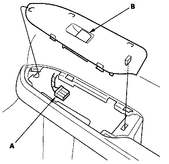 3. Disconnect the 5P connector (A) from the front passenger's power window switch (B).