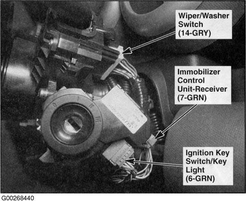 | Immobilizer Control Unit Receiver | In steering wheel cover. See Figure. |