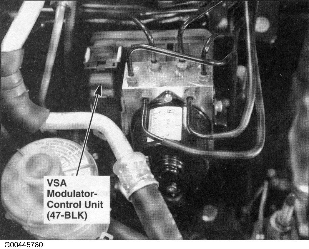 | VSA Modulator-Control Unit | Right rear corner of engine compartment. See Figure. |