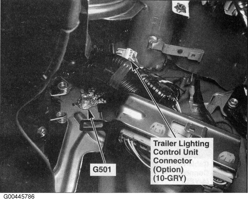 | Trailer Lighting Control Unit Connector | Under left side of dash. See Figure. |