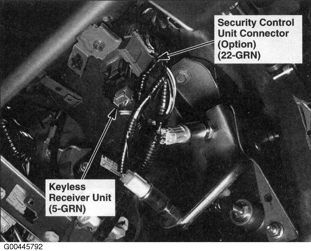 | Keyless Receiver Unit | Under left side of dash. See Figure. |