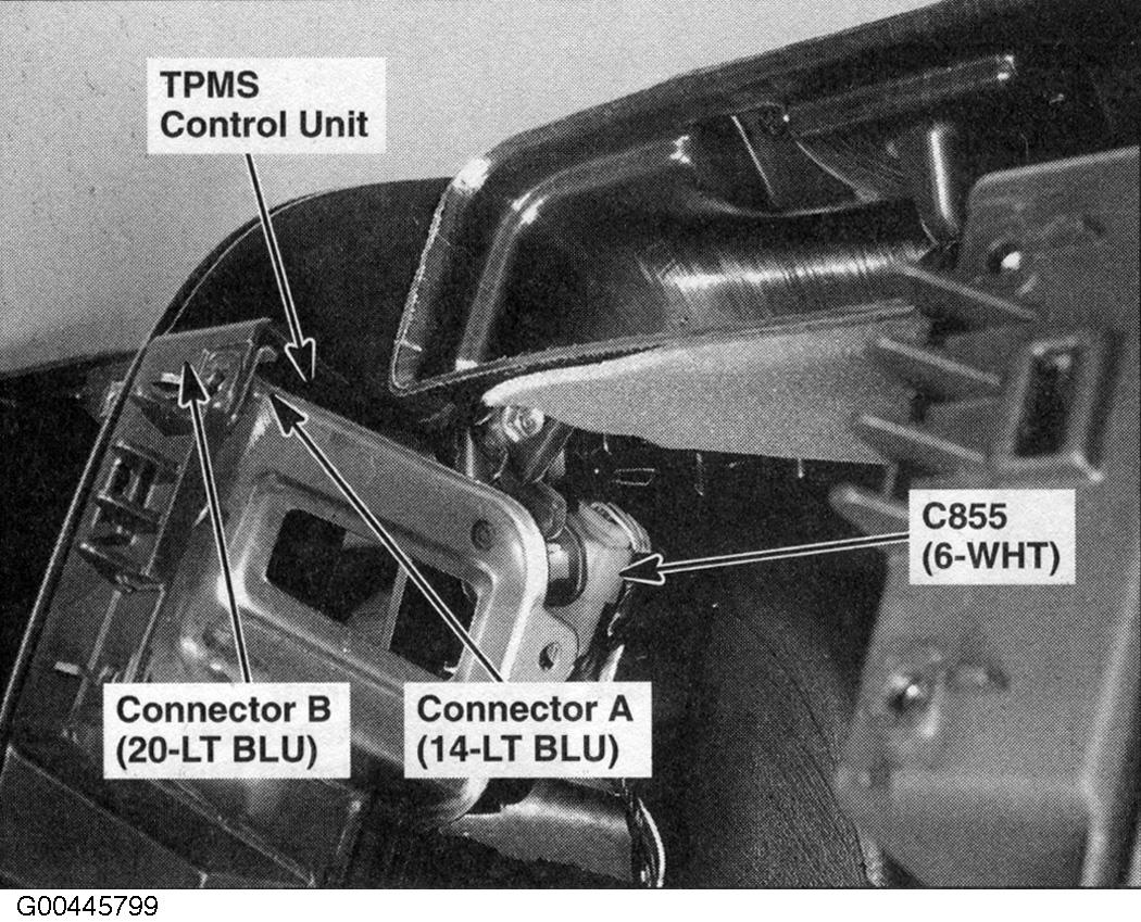 | TPMS Control Unit | Under middle of dash. See Figure. |