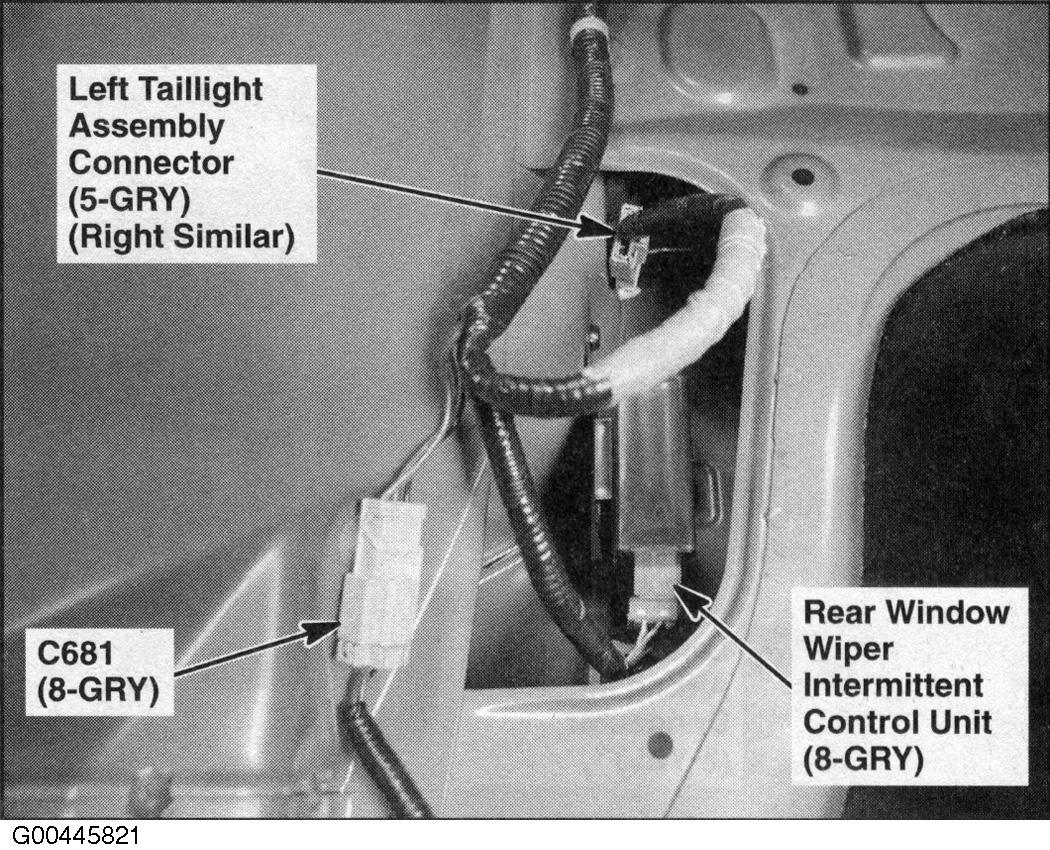 | Rear Window Wiper Intermittent Control Unit | Behind left quarterpanel. See Figure. |