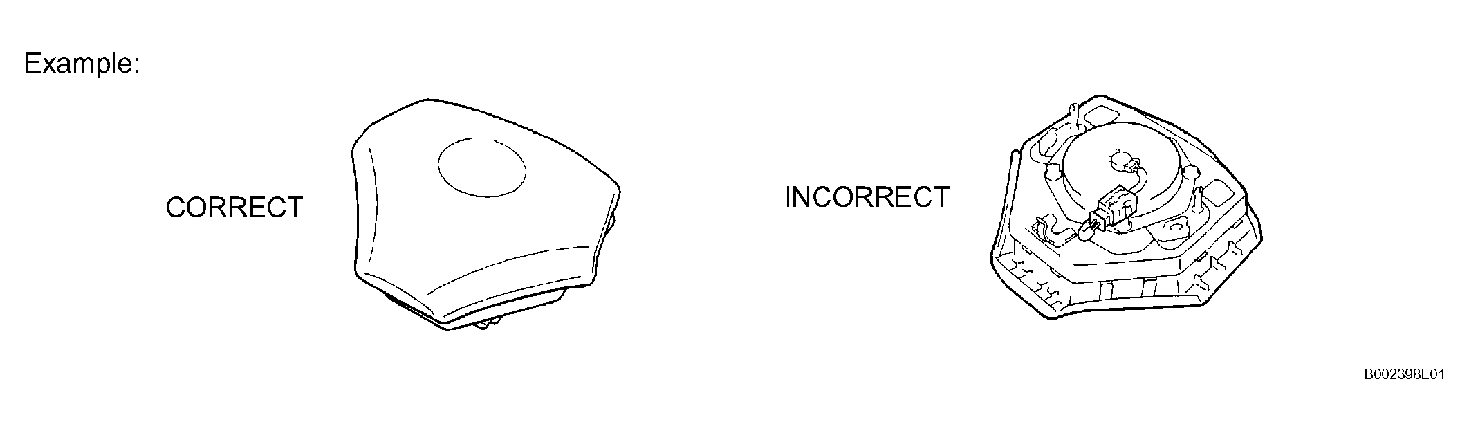 5. When using electric welding anywhere on the vehicle, disconnect the airbag ECU connectors (2 pins). These connectors contain shorting springs. This feature reduces the possibility of the airbag deploying due to currents entering the squib wiring.