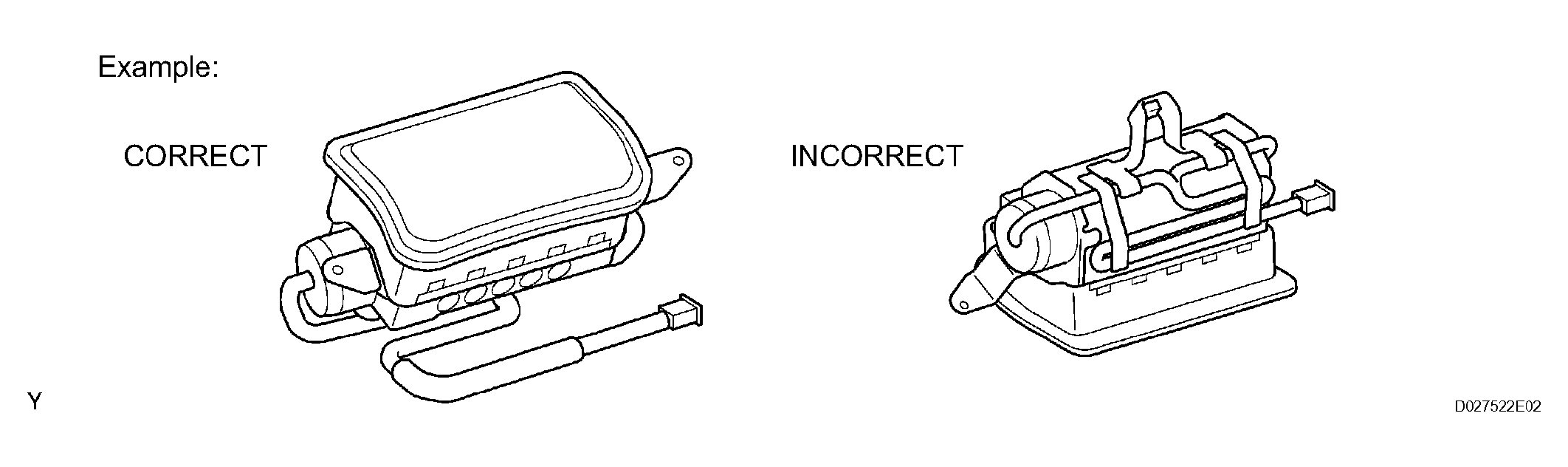 5. When using electric welding anywhere on the vehicle, disconnect the airbag ECU connectors (2 pins). These connectors contain shorting springs. This feature reduces the possibility of the pretensioner deploying due to currents entering the squib wiring.