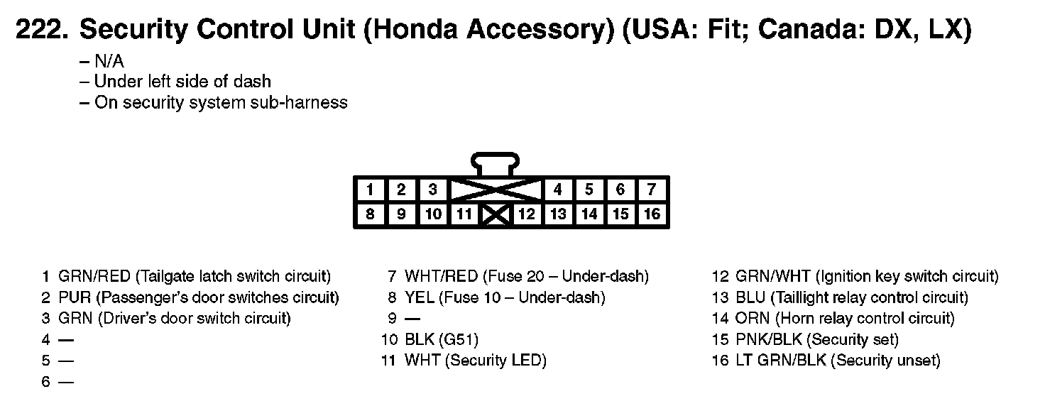 222. Security Control Unit (Honda Accessory) (USA: Fit; Canada: DX, LX):