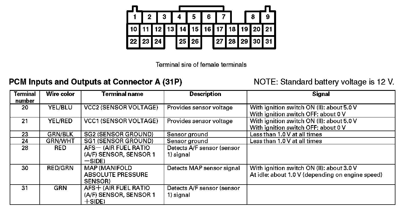 PCM Inputs And Outputs At Connector A (31P) (Part 1):