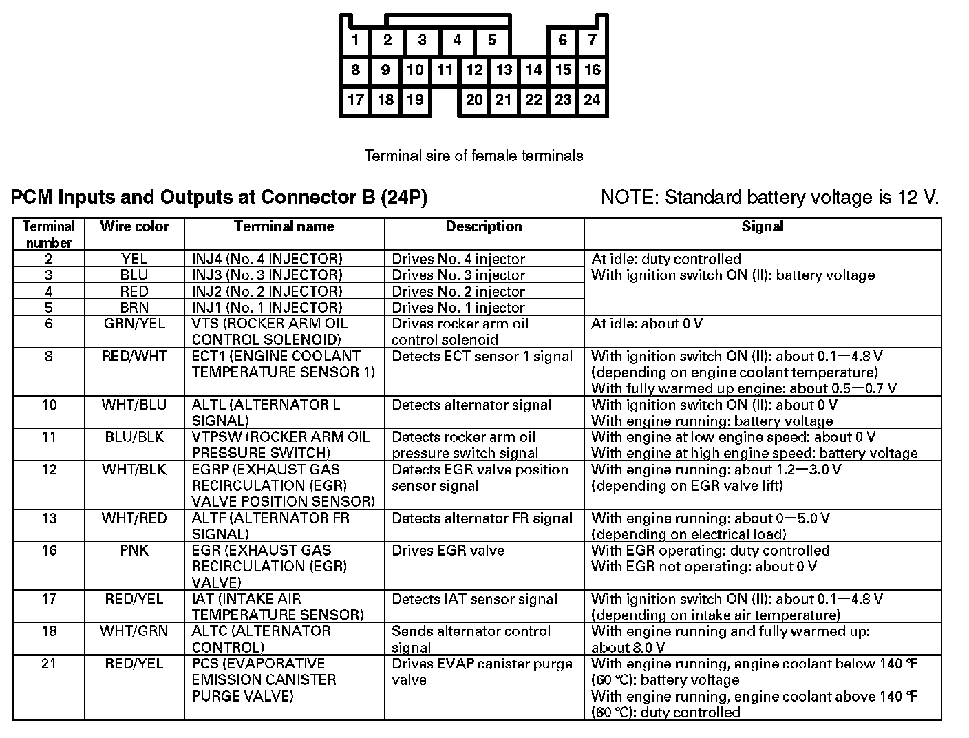 PCM Inputs And Outputs At Connector C (22P) (Part 1):
