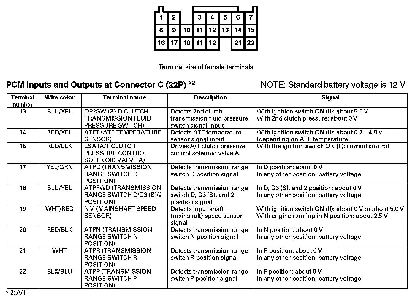 PCM Inputs And Outputs At Connector C (22P) (Part 2):