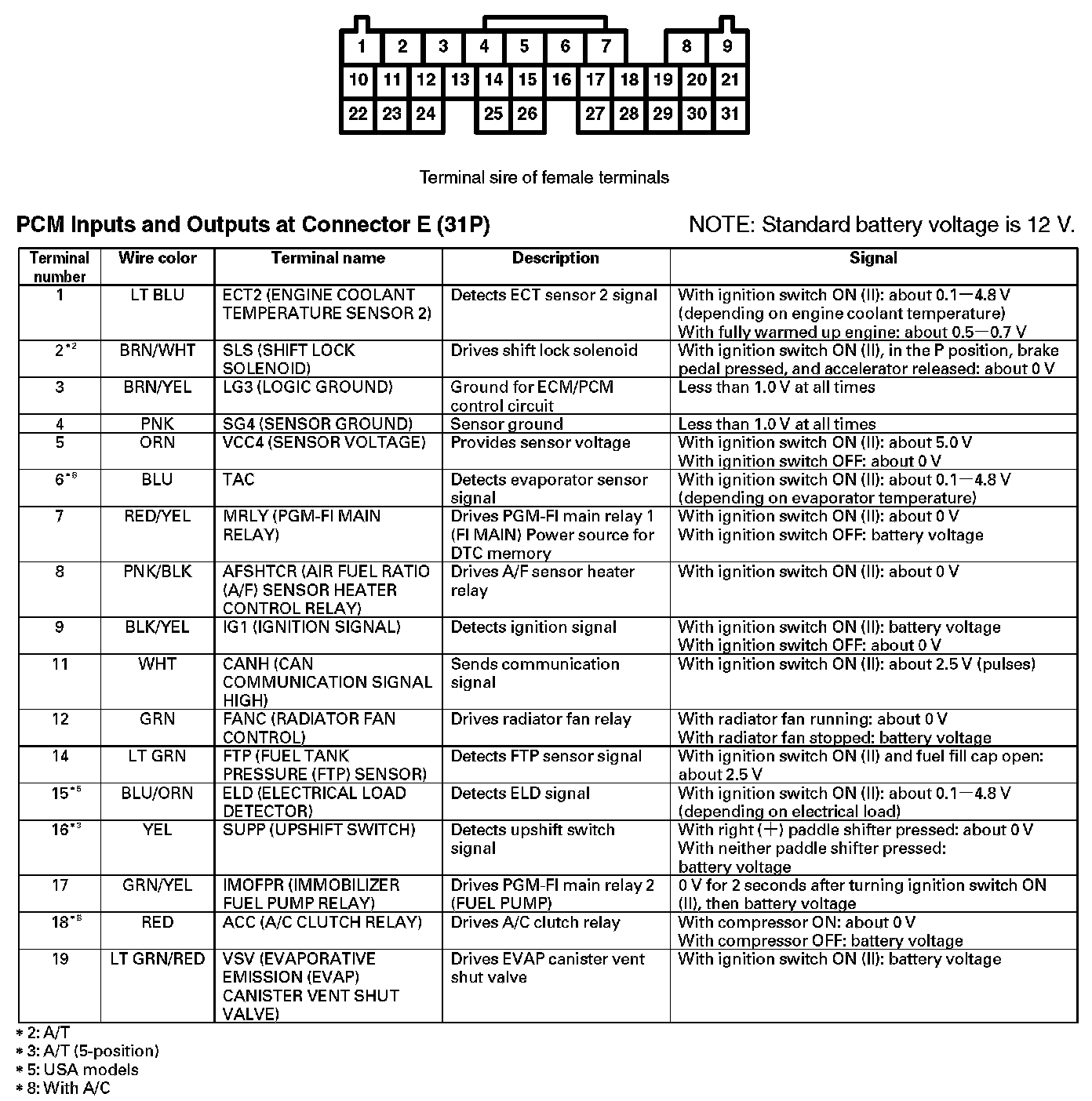 PCM Inputs And Outputs At Connector E (31P) (Part 2):