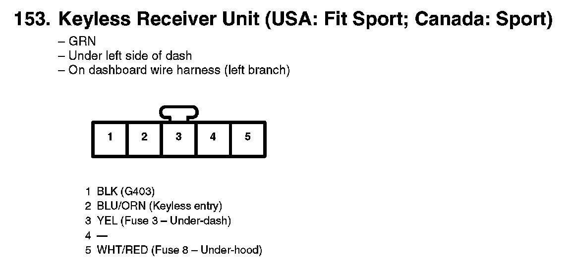 153. Keyless Receiver Unit (USA: Fit Sport; Canada: Sport):