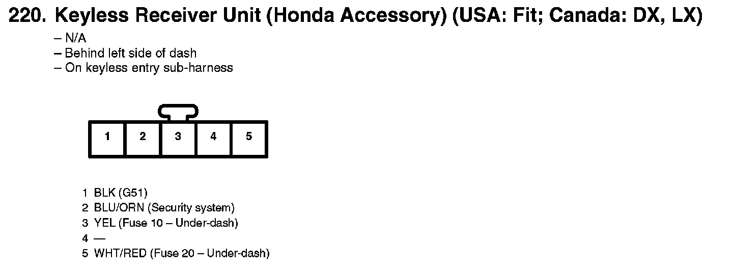 220. Keyless Receiver Unit (Honda Accessory) (USA: Fit; Canada: DX, LX):