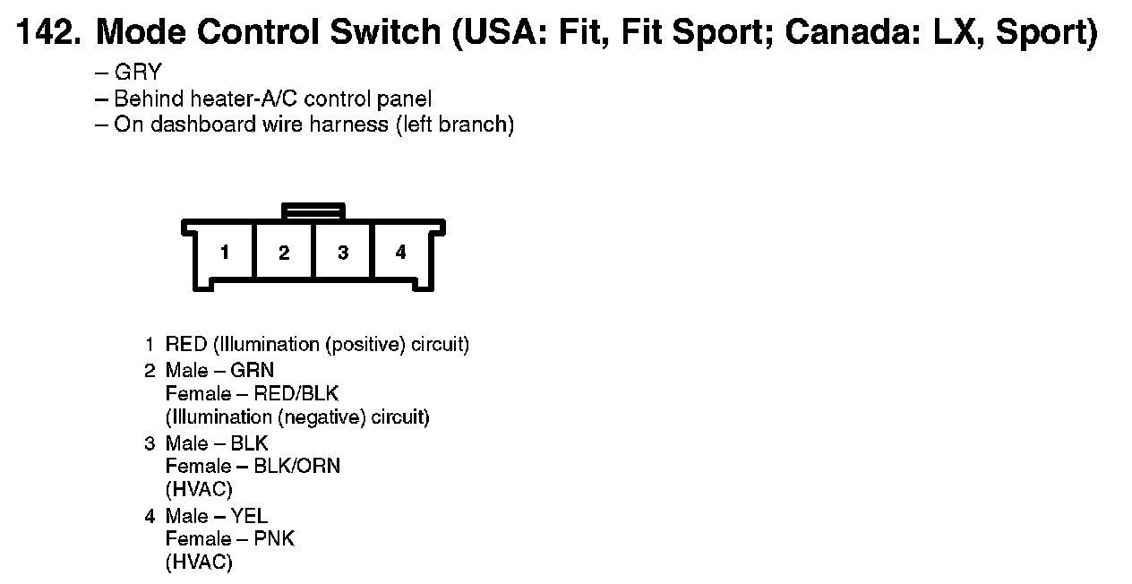 142. Mode Control Switch (USA: Fit, Fit Sport; Canada: LX, Sport):