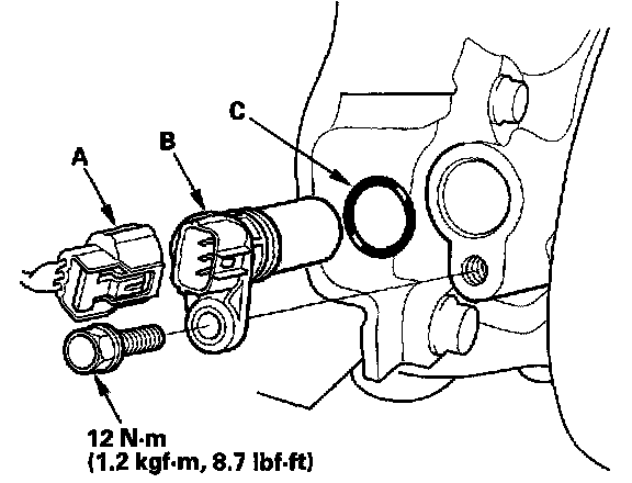 3. Install the parts in the reverse order of removal with a new O-ring (C).