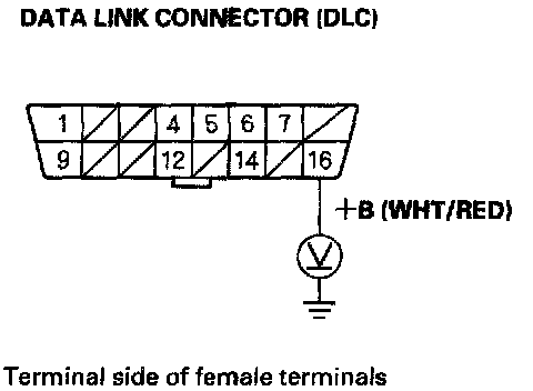 24. Measure voltage between DLC terminal No. 16 and body ground.