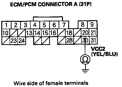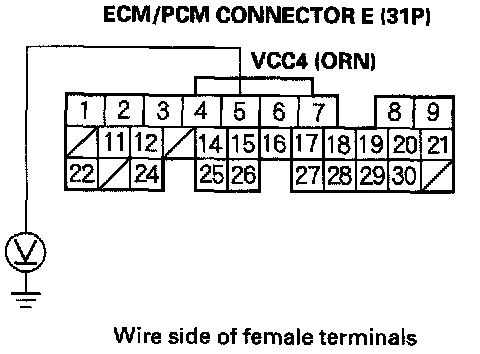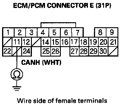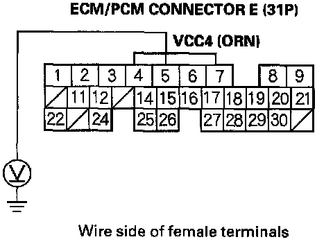 31. Check for continuity between ECM/PCM connector terminal E11 and body ground.