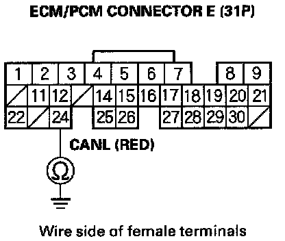 34. Check for continuity between ECM/PCM connector terminal E24 and body ground.