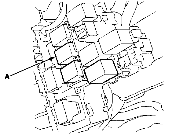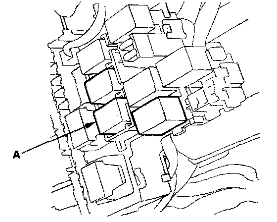 50. Remove PGM-FI main relay 2 (FUEL PUMP) (A) from the under-dash fuse/relay box.