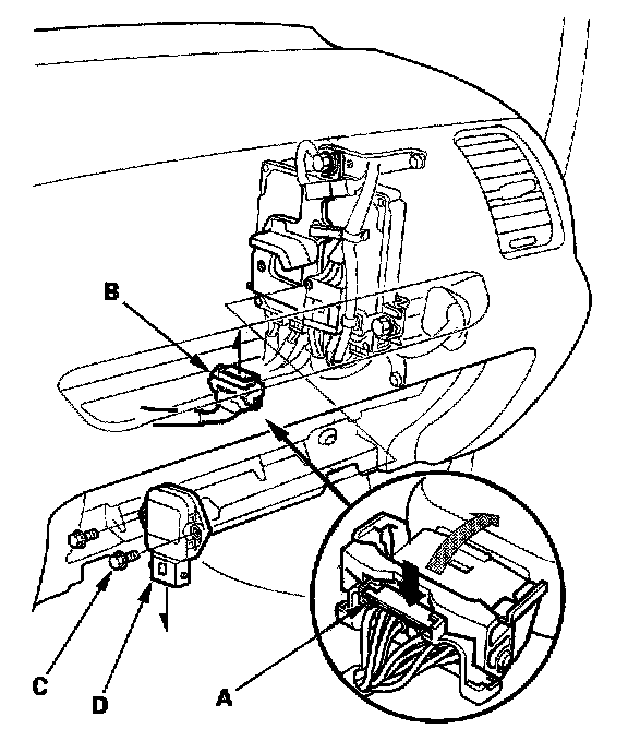 3. Remove the bolts (C), and the throttle actuator control module (D).