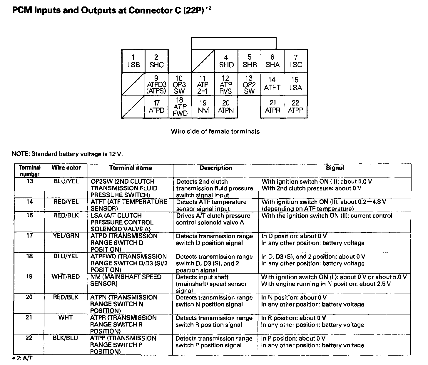 PCM Inputs And Outputs At Connector C (22P) Part 1: