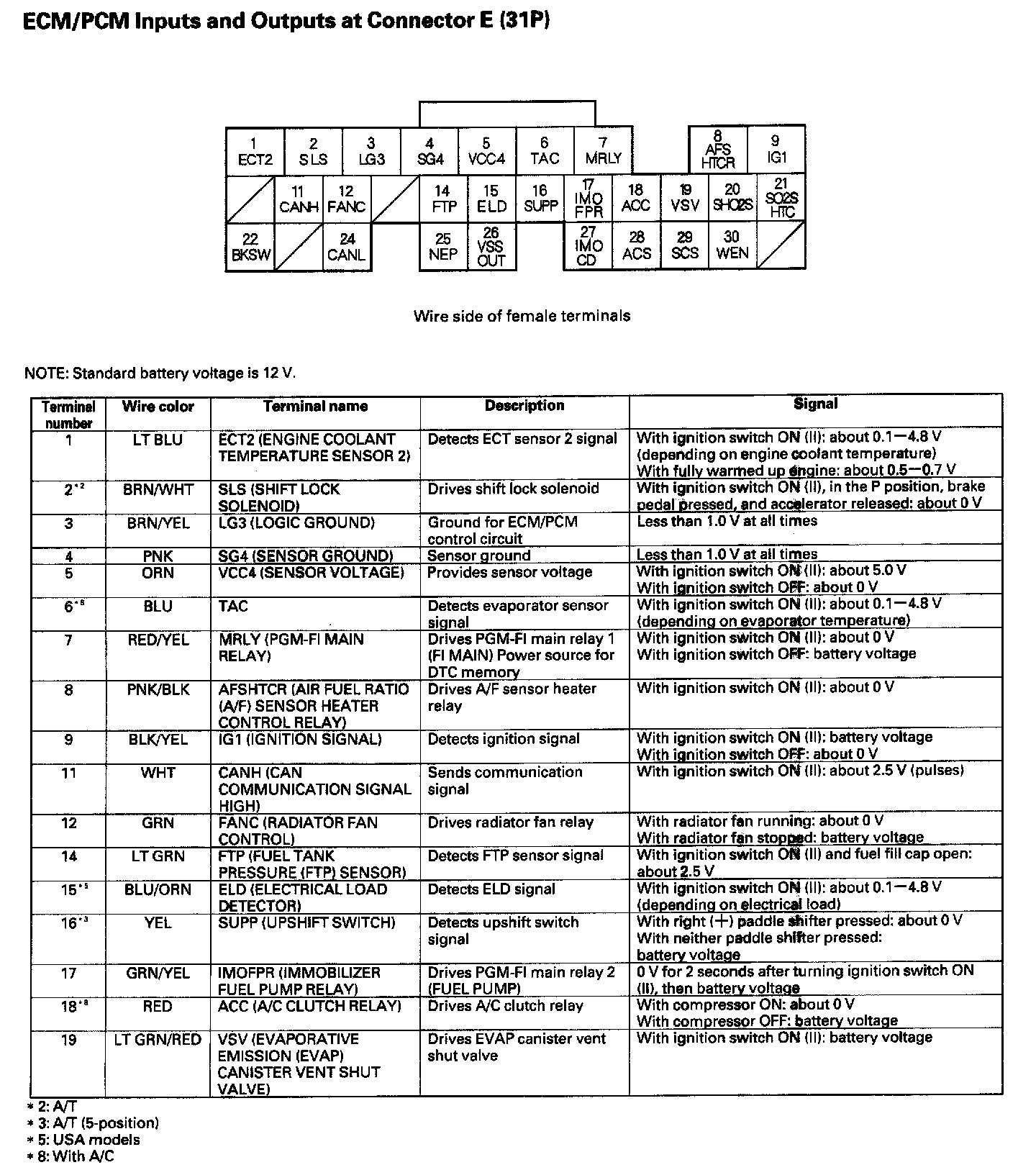 ECM/PCM Inputs And Outputs At Connector E (31P) Part 2: