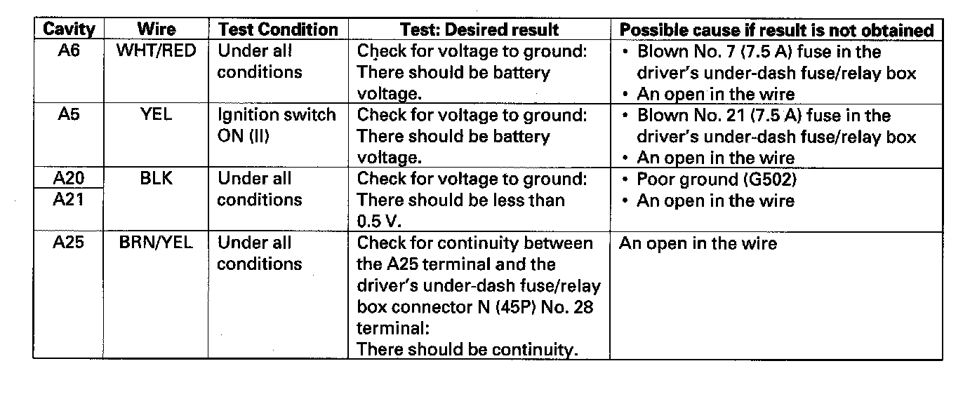 4. Reconnect connector A to the gauge control module, and make these input tests at the connector.