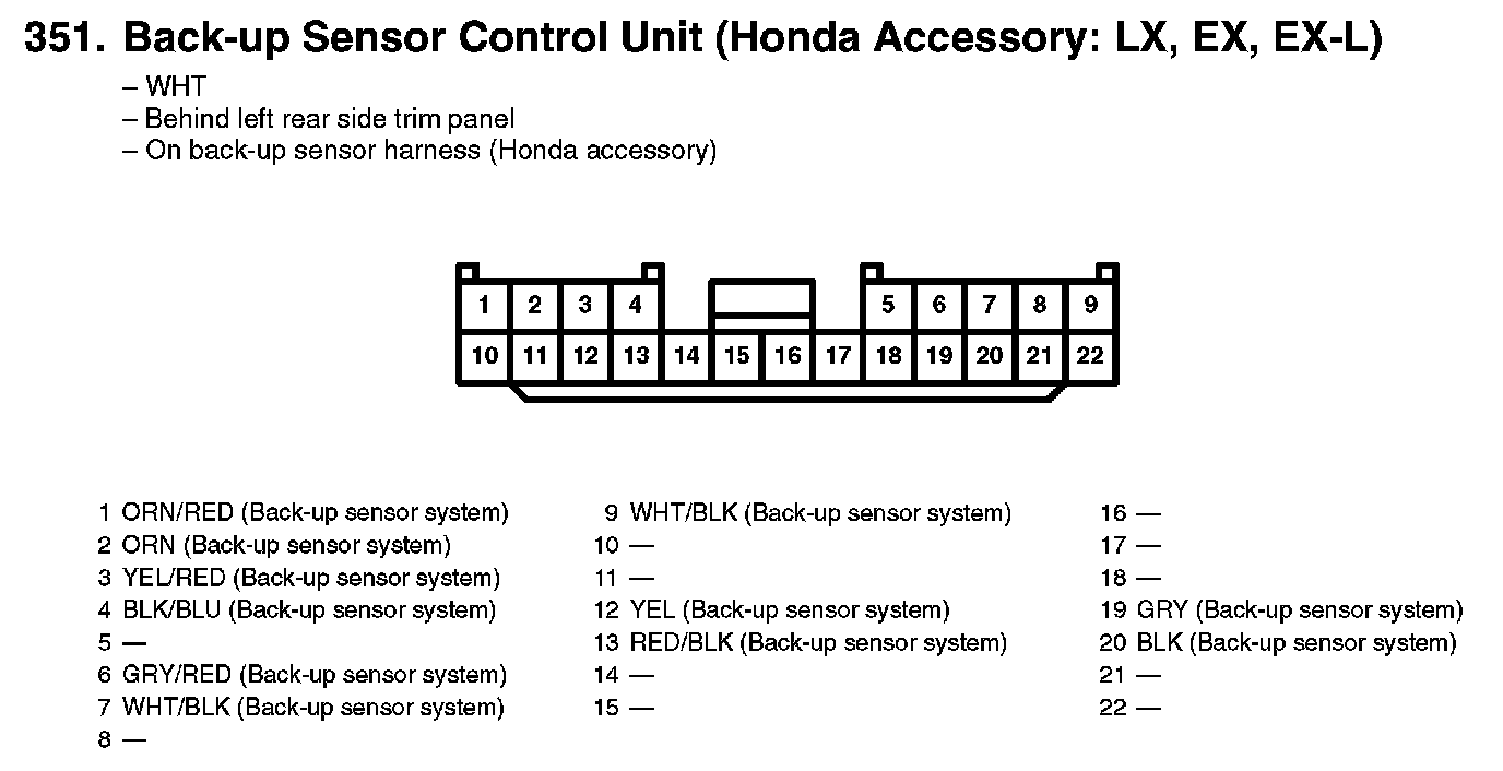 351. Back-up Sensor Control Unit (Honda Accessory: LX, EX, EX-L):