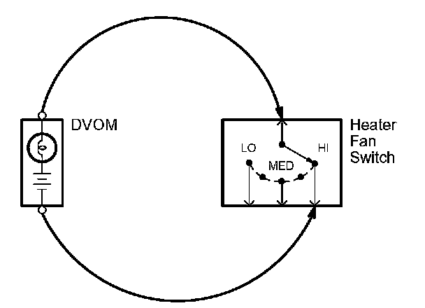 1. Place the digital volt/ohmmeter (DVOM) in the appropriate DC volts range. Connect the positive lead to the end of the wire (or to the connector or switch) closest to the battery.