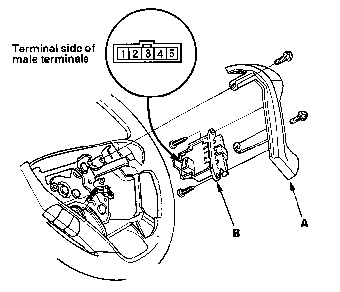 2. Remove the cover (A), then remove the set/decel, resume/accel, cancel switch (B).