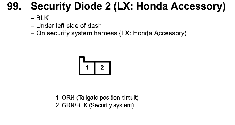 99. Security Diode 2 (LX: Honda Accessory):