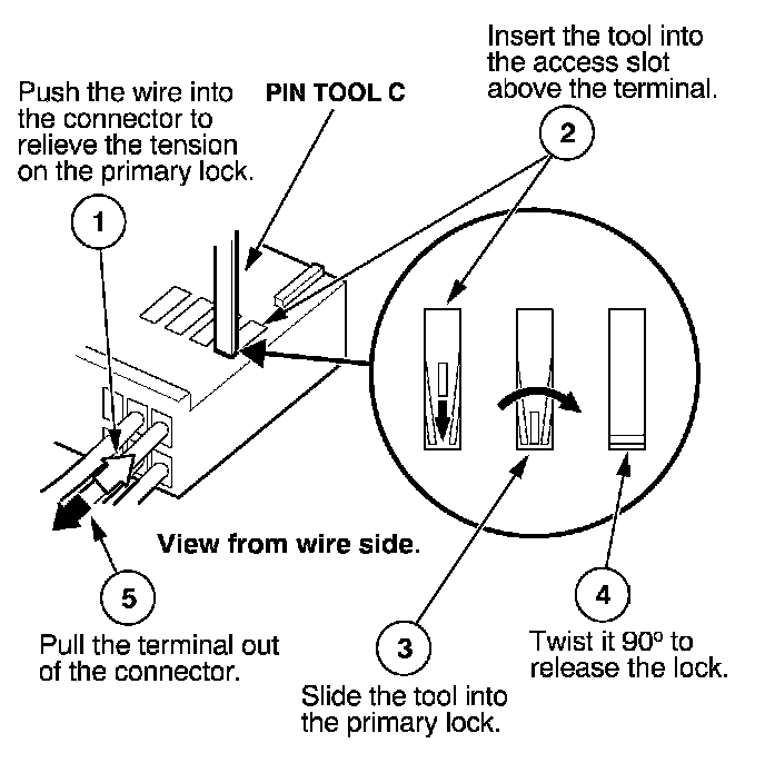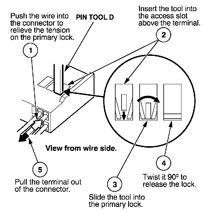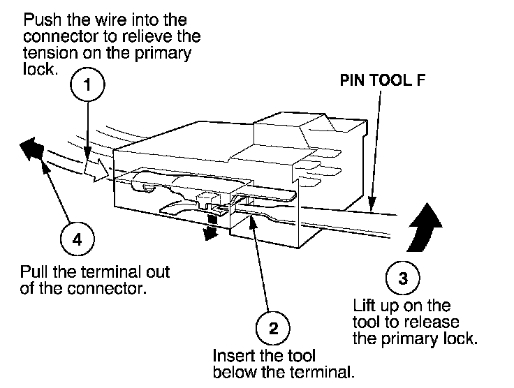 Before you begin, inspect the wire you are about to repair for damage and length. Make sure the wire will be long enough to make a terminal repair without stretching it when you reinstall the terminal in the connector. If the wire is too short, or if access to the connector is too restricted to make a terminal repair, you may need to install a pigtail terminal (a short length of wire with a factory-crimped terminal on it). Refer to HOW TO INSTALL PIGTAIL TERMINALS.