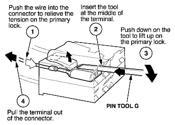 - If it has a secondary terminal lock, go to Connectors With a Secondary Lock. A secondary lock, found on most connectors on some models, is an additional locking device on the connector housing as a backup for the primary lock on the terminal.