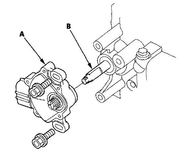 14. Install the transmission range switch (A) gently over the selector control shaft (B), and install the bolts loosely.