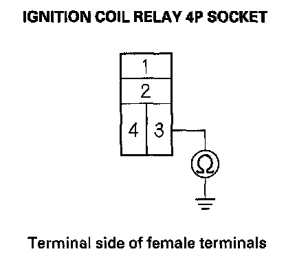 7. Check for continuity between ignition coil relay 4P socket terminal No.3 and body ground.